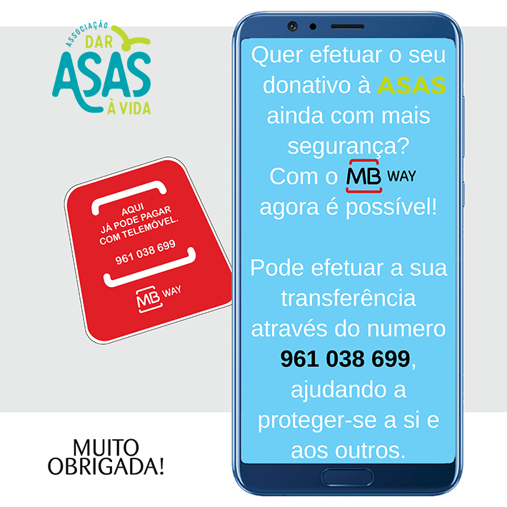 Na app MB WAY, escolha a opção “Ser Solidário”, selecione a ASAS ("Dar ASAS à Vida"), introduza o montante e o seu NIF (Número de Identificação Fiscal), e já está.
